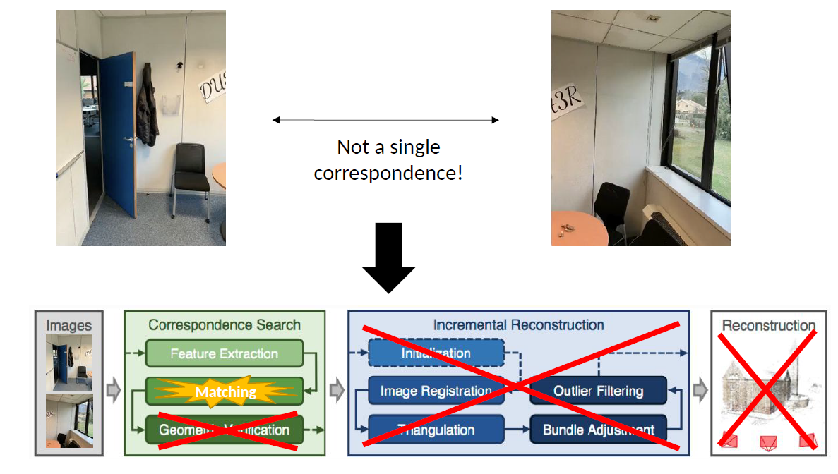 Traditional CV (COLMAP): Establishing correspondances amoung multive views of the same scene : Structure from motion